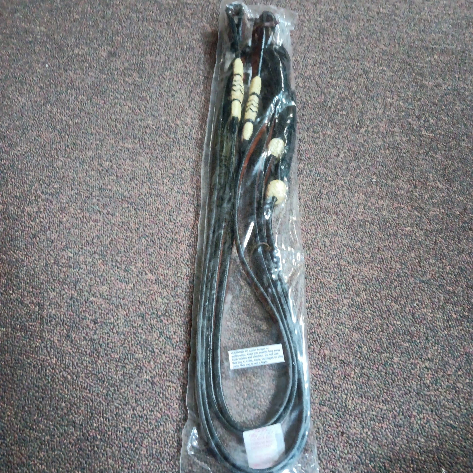 Natural/blk rawhide braid leather split reins,tie bit ends & blk tassels